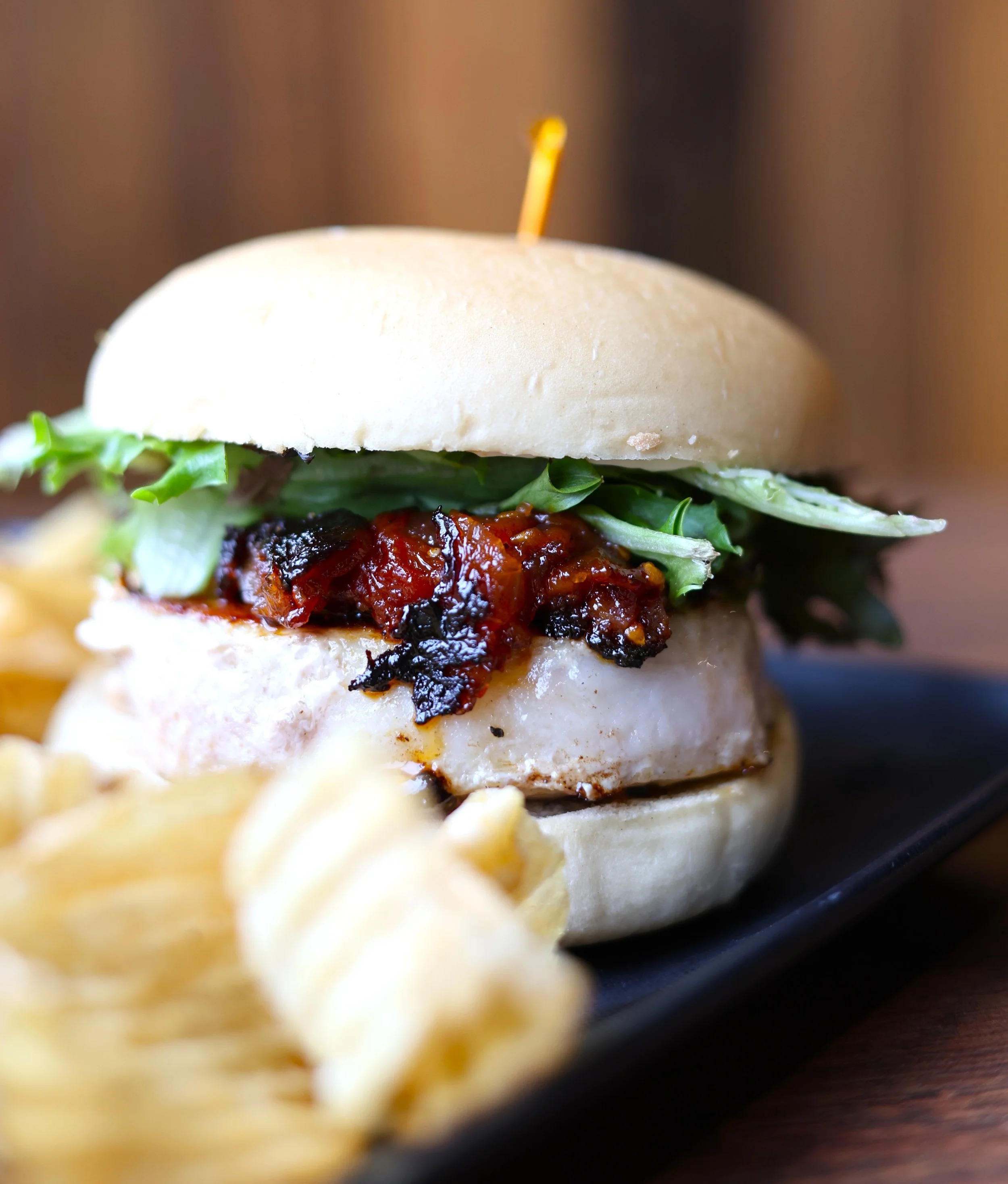 Smash burgers served on fresh locally baked buns with house-made steak fries + ketchup glaze.